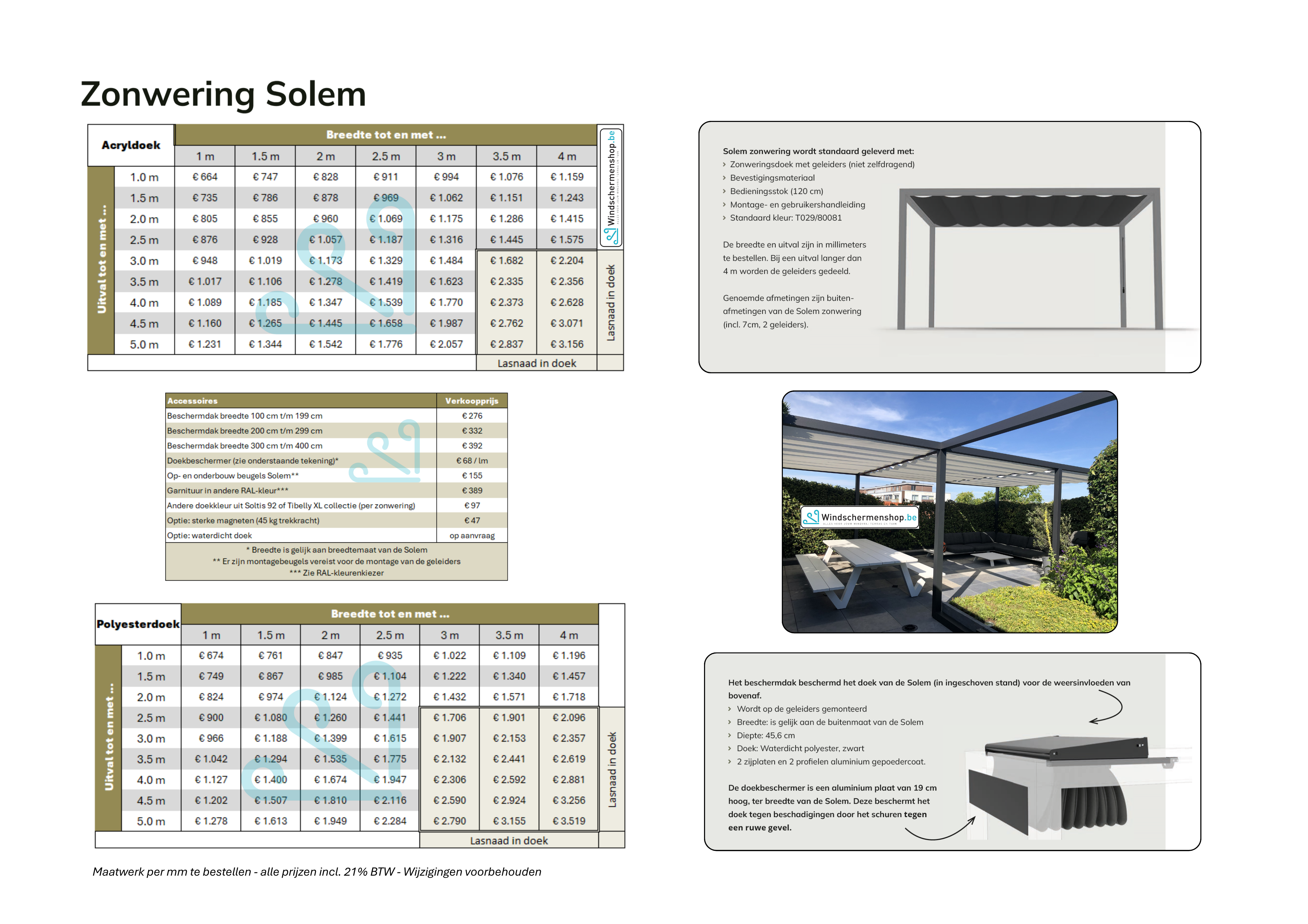 Met Solem haalt u degelijke materialen in huis die eenvoudig manueel te bedienen zijn. Doek is zelfs, indien gewenst, na verloop van tijd eenvoudig zelf te demonteren en te her-monteren voor een onderhoudsbeurt.
